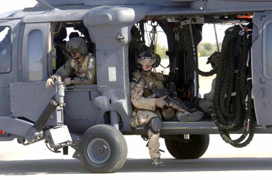 In the back of Pedro 86 the elite Pararescue Team, call sign “Scalpel 31”, consults a map and their GPS units. “Roger that Pedro, we can run in. Confirm BEMT (beginning early morning twilight).”