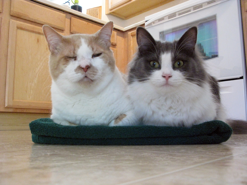 Fred on the left before he passed away, Mimi the day I brought her home on the right.