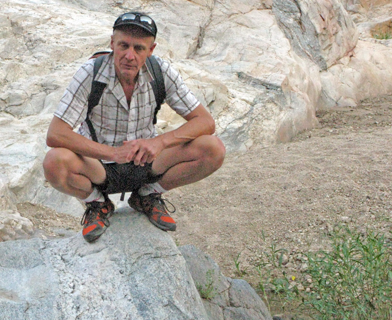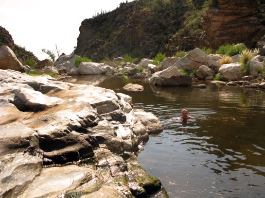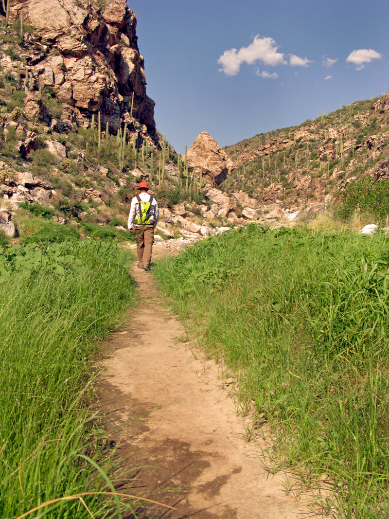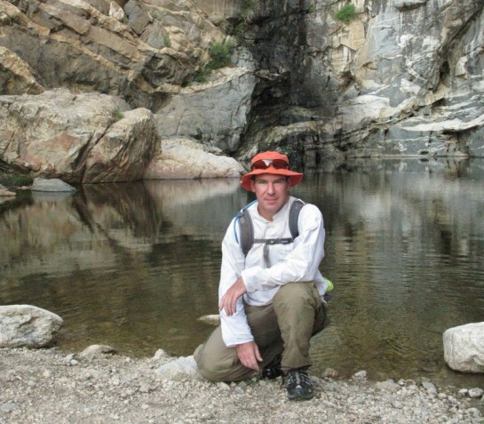 Craig Bellmann shot this photo of me at the entrance to the Lower Tanque Verde Falls. We went there on an expedition to climb up the falls and swim in the pools that form there during the monsoon season. Flash floods from the sudden thunderstorms are a constant threat during the monsoon season.