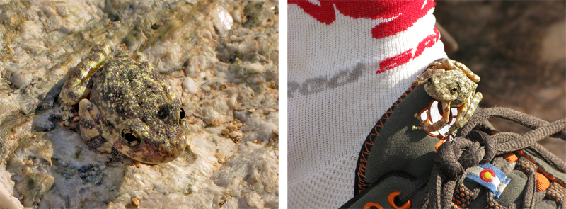 A small frog or toad species joined us at a rest break. Some of the species in the region use a biological process called “cryptobiosis” whereby they lie entirely dormant until the water arrives, then spring to life until the drought of the desert returns.