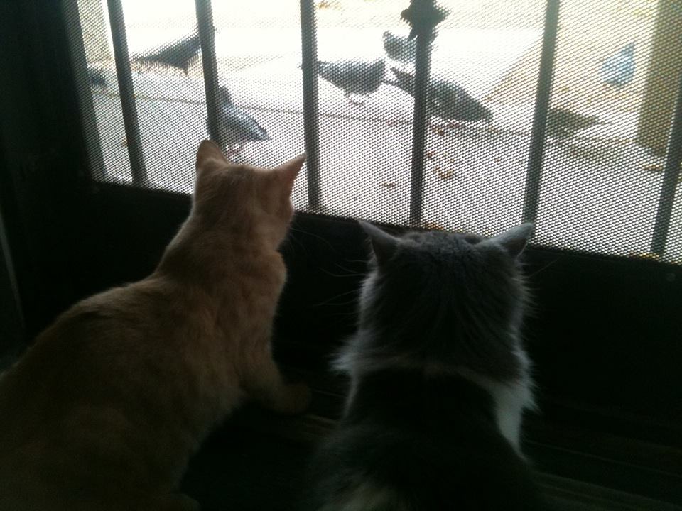 A strange cat came onto the porch. This was a big event. Mia hissed and growled. MiMi’s tail seemed to get bushier and her fur stood up. There wasn’t a fight, but there was some hissing and low growling and everyone understood quickly they needed to respect each other. Once the visiting cat understood the porch belonged to Mia and MiMi already, the visiting cat went next door. Sometimes the cat comes and visits, but now, it sits a few feet away from the screen and rests there peacefully while Mia and MiMi watch it.