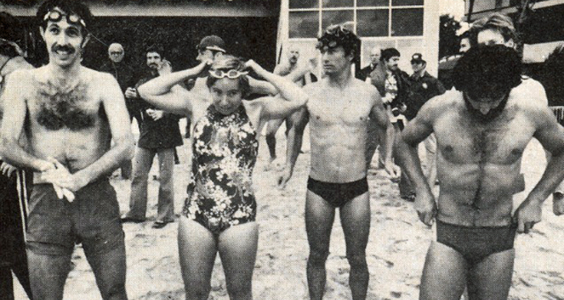 On the beach at the 1979 Ironman start on Oahu before the race moved to Kona. Interestingly, this swim was cancelled too, and moved to the next day due to bad weather.