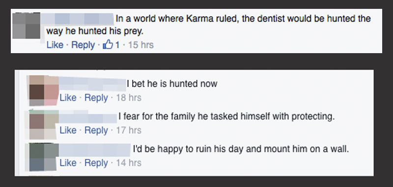 The hunter is a dentist from Minnesota. Social media and news reports say his practice is closed now, he has removed his social media and he and his family have received threats.