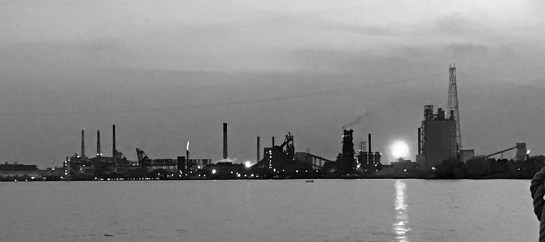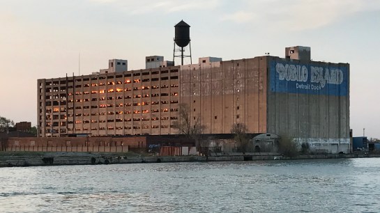 To the south we saw the dark silhouette of the industrial monolith of Zug Island, formerly one of the most polluted places on earth, now in the midst of reform into at least a slightly less toxic habitat. Today foxes, peregrine falcons, feral cats and other unusual species share the island with its heavy industrial tenants like steel mills and coke ovens. A rare species of sturgeon lives on one side of the island because of the deposits of coal cinders that collect on the bottom of the river from the industrial activity.